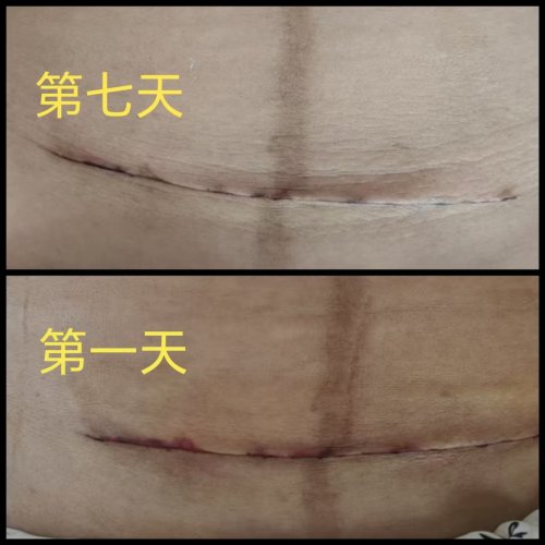 剖宫产术后六天,伤口外观红肿,有血性渗出液,瘢痕周围颜色暗红,产妇自述疼痛感强烈。应用普莱姿等离子体精华素7天,红肿消退,血性渗出液已吸收,伤口周围颜色基本恢复到正常水平。