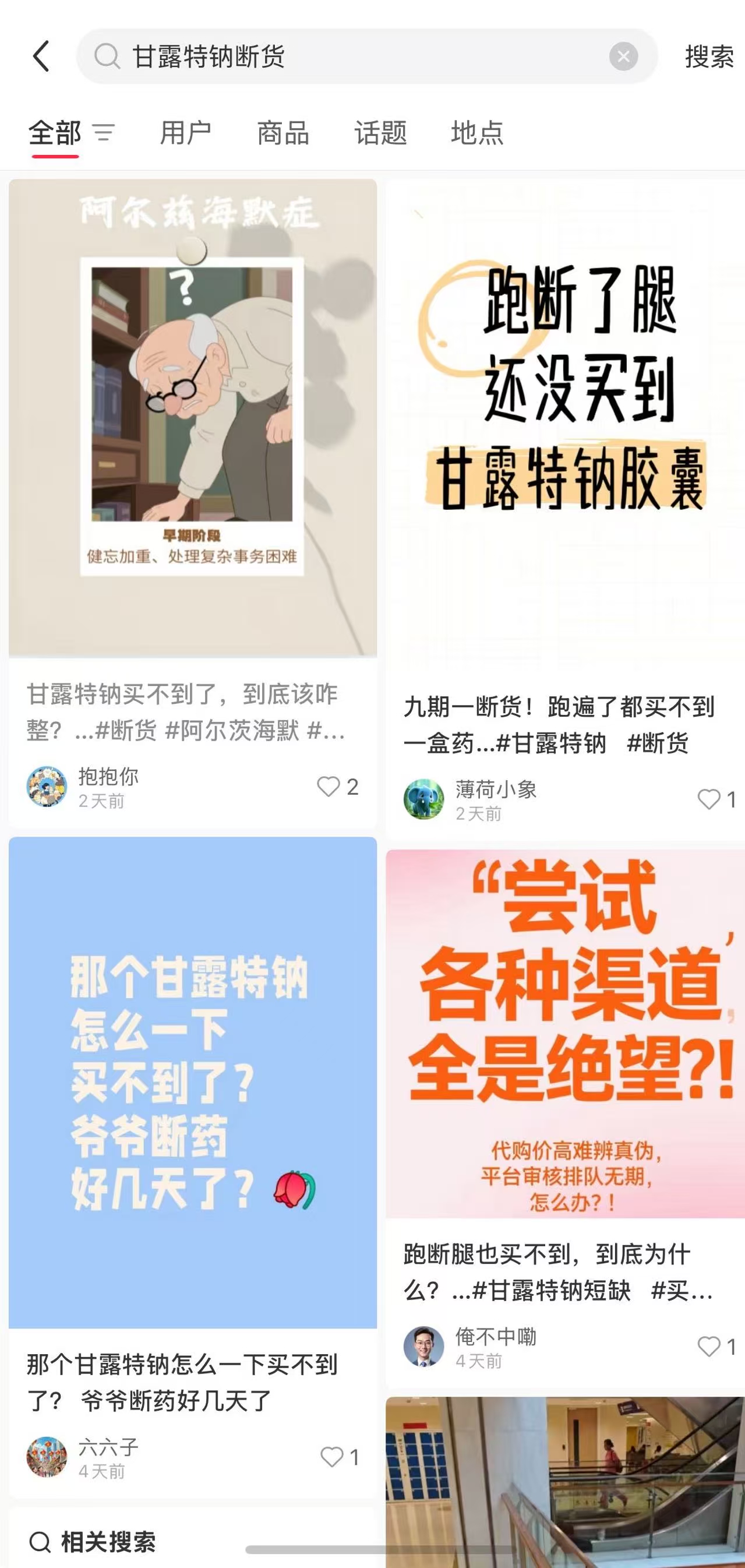 据媒体公开报道及社交平台网友反馈,甘露特钠胶囊断货情况不仅仅出现在上海,也有来自河北、湖南、四川等地网友反馈药物断货的情况,无论在医院还是药店都很难买到这款药物,而这一药物短缺的情况从4月底持续至今。